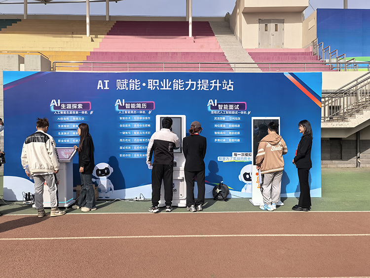 此外,活动现场还设置“AI赋能·职业能力提升站”,围绕毕业生求职全流程需求,开设AI就业赋能、AI就业服务、AI生涯探索、AI智能面试等功能板块,覆盖求职准备、能力提升、岗位对接等关键环节,以数字化手段为毕业生求职就业赋能助力。