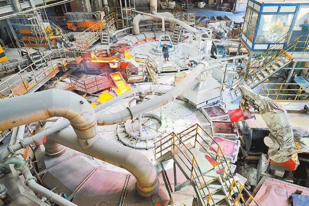 智控中心里,电子屏上显示着各工序实时生产的画面和数据,操作人员轻点屏幕即可实现远程调控和智能调度;变电站内,轨道巡检机器人与智能机器狗全天候不间断穿梭巡检;火法厂备料车间,智能抓斗吊车精准完成自动上料、倒料、混料……在易门铜业打造的“智慧工厂”中,这些数字化场景早已司空见惯。