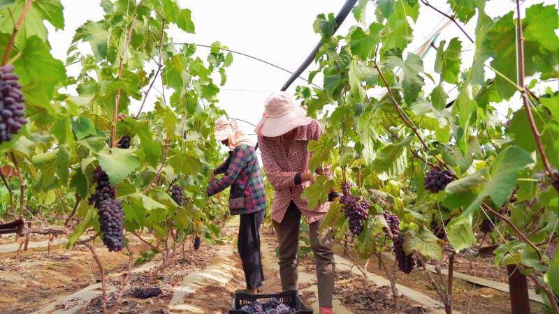 葡萄产业的发展,不仅让种植户的腰包鼓了起来,基地还像一个开在田间的“务工车间”,让周边群众实现了家门口就业。据悉,整个采摘季,基地能为阿里地村解决100余人就业,劳务收入可达20万元。“离家很近,我们来葡萄基地打工一天可以挣120元左右,还是很好的。”葡萄采摘工李世芬说。