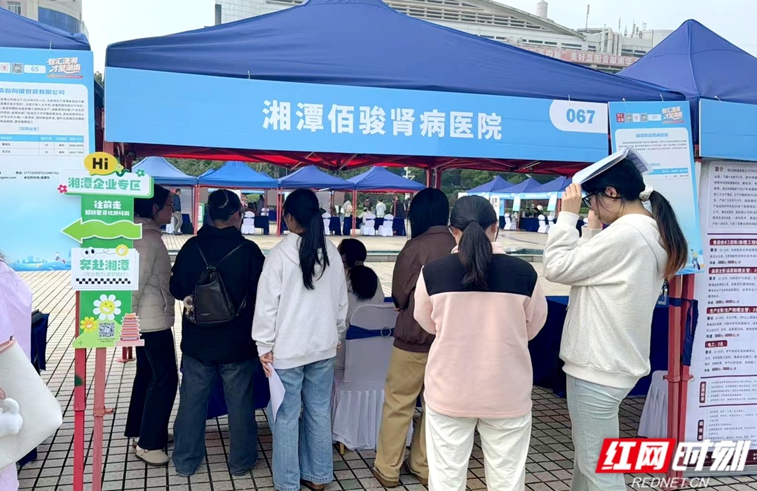 在长沙主会场的湘潭专区,许多青年学子前来咨询。