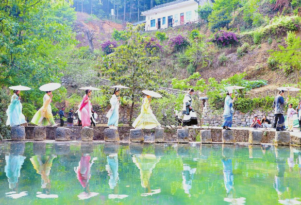 补掌古桥边,“山歌擂台·最强乡音争霸赛”热闹开唱,原生态乡音婉转悠扬;“水田抓抓乐”设置三大体验区,游客徒手抓鱼、追逐香猪鸡鸭,尽享田园乐趣。非遗打铁花惊艳夜空,高温铁水化作璀璨花火;补掌小河上,游客乘竹筏缓缓前行,如在画中游。