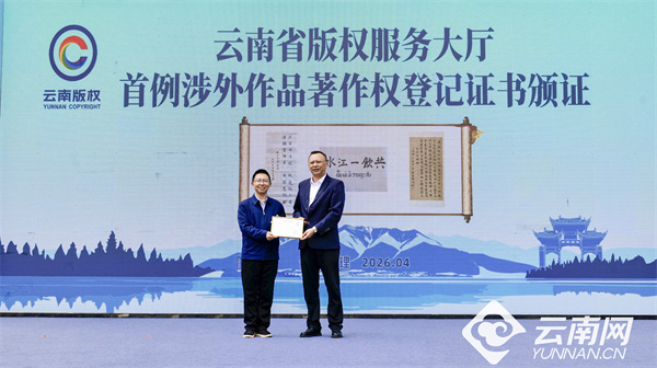云南省版权服务大厅首例涉外著作权登记证书颁证仪式