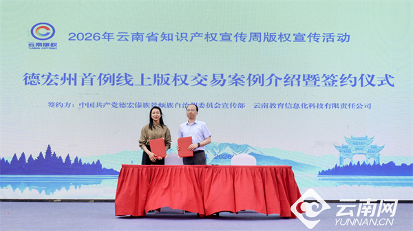 现场还进行了德宏州首例线上版权交易、云南民族大学版权资产运营、“民间文艺备案库”系统开发的签约仪式以及北京金山办公软件股份有限公司国产软件捐赠,共同凝聚起保护知识产权、推动全民阅读的强大合力,让尊重版权成为社会共识,让书香满溢七彩云南,让创新活力竞相涌流。