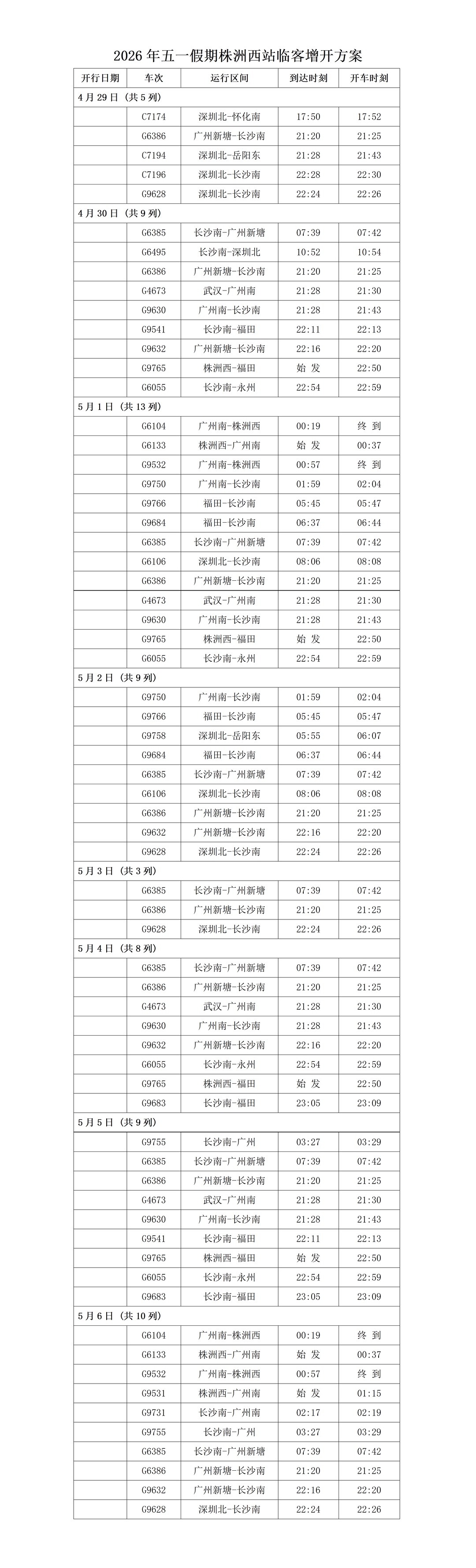 具体增开车次、开行时间及运行区间如下: