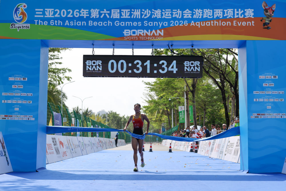 4月23日,在海南三亚举行的第六届亚洲沙滩运动会游跑两项女子个人赛中,中国选手林鑫瑜获得冠军。新华社记者 朱峥 摄