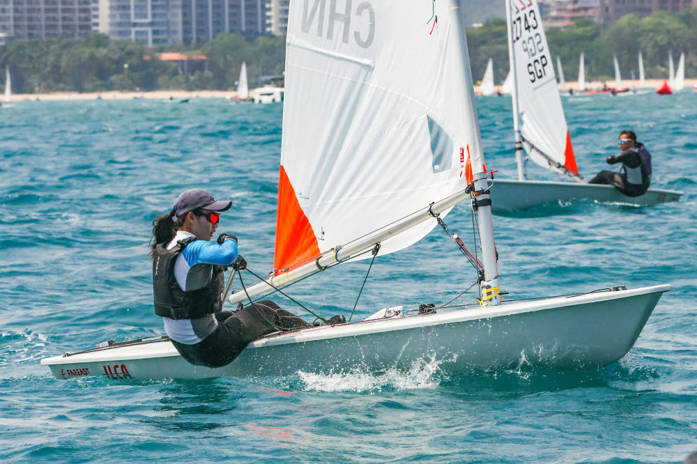 冲过ILCA4帆船女子组的终点时