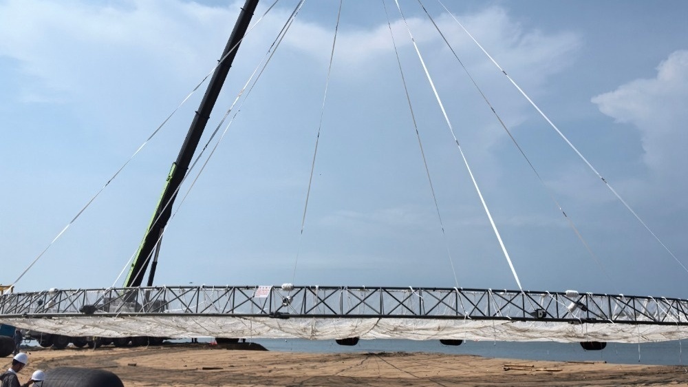 海南首台套桁架平台三亚下水组装 助力“蓝色粮仓”建设