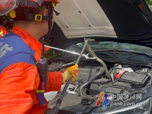 甬派客户端记者马涛通讯员王董“对,就是这条蛇,太吓人了。4月18日下午,当车主李先生看到两名消防员从汽车发动机舱内“揪”出一条长近2米的大蛇后,仍感到一阵后怕。据李先生介绍,当天下午,他驾车经过余姚市牟山镇过五线时,看到两条大蛇正从公路上穿行而