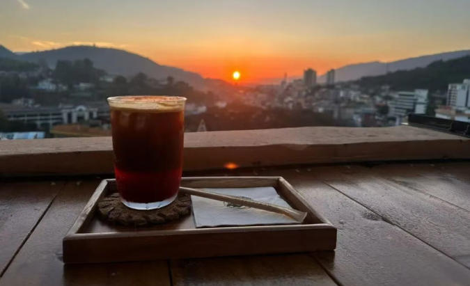 在德宏州畹町镇一栋老楼的天台,有一家别出新意的咖啡店——象往咖啡,在这里可以坐看落日从异国山头落下。