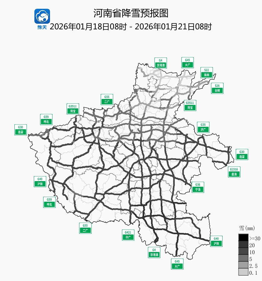 大河网讯1月18日,记者从河南省公安厅交管总队获悉,为保障广大市民出行安全,河南省气象局气象服务中心、河南省公安厅交管总队、河南省交通运输厅高速中心联合发布高速公路交通气象风险提示。天气 1月19日为主要降雪时段受西南暖湿气流和强冷空气共同影响,1