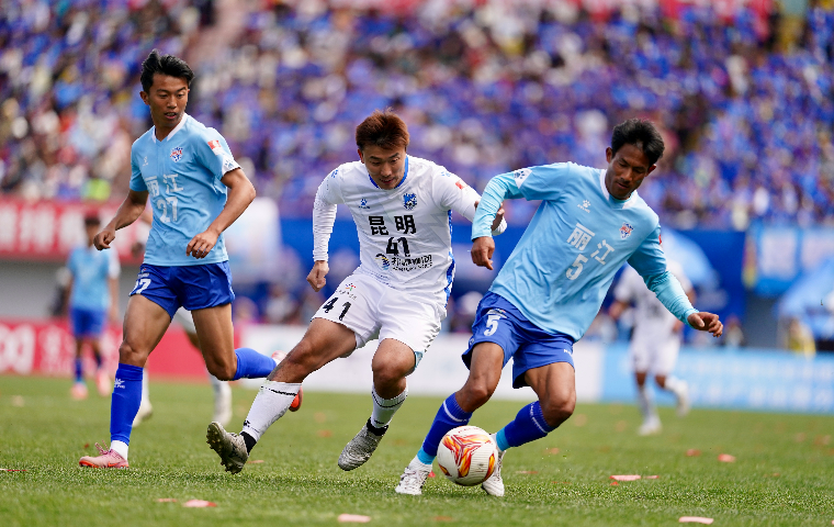 4月11日,2025/2026富滇银行云南省城市足球联赛(滇超联赛)第九轮一场焦点争夺在丽江体育发展中心体育场举行,坐镇主场的丽江队凭借下半场替补登场的队员高福荣补射破门,1比0战胜来访的昆明队。