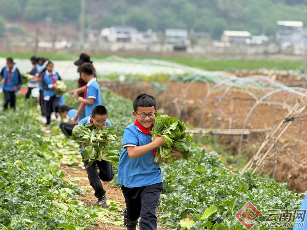 学校实施“1+X”的课时安排,即一节理论课加多节实践课。老师在课堂上讲完植物怎么长,下节课直接带娃们去地里干活,知识立马就能用上。这种“学—做—悟”的模式,让劳动不再是完成任务,反倒成了孩子们最盼着的“游戏”。