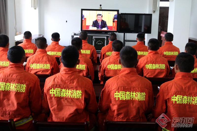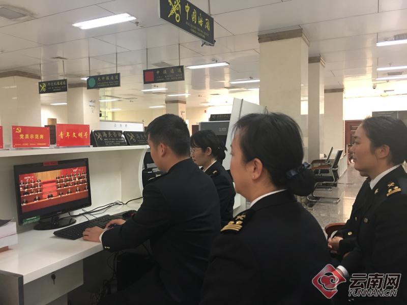昆明市五华区护国街道青年路社区组织党员干部和社区工作人员集中收看改革开放四十周年纪念大会现场直播。记者 杨峥 摄