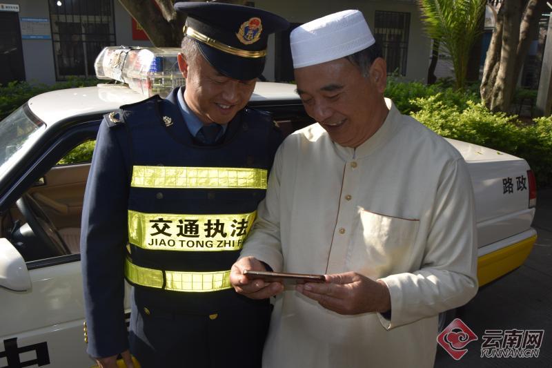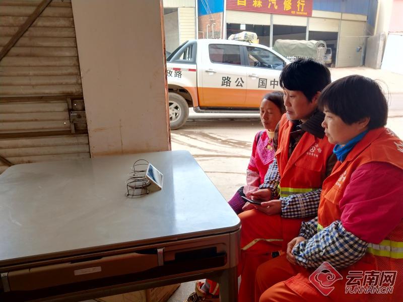 红河公路局蒙自公路分局职工在路况巡查过程中,到公路沿线少数民族群众家中“蹭”无线网络观看庆祝改革开放40周年大会