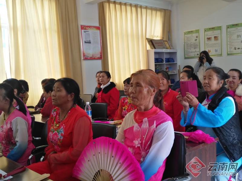 弥渡县弥城镇建宁社干部、各村组干部和姚芹村开心姐妹花灯队队员在姚芹村村民活动场所观看大会
