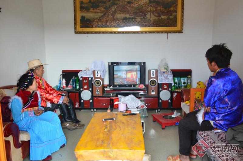 罗平县罗雄街道中和村的彝族群众收看情景。通讯员 毛虹 摄