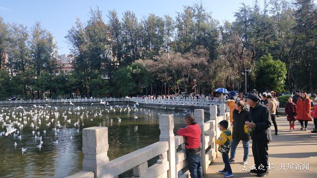 1月26日,记者前往翠湖,发现因防控疫情需要,翠湖已经封园了,但在翠湖边上,还有人在投喂海鸥,其中多数人戴着口罩,也有部分人没有戴。由于投喂的人不多,海鸥大幅减少,估计只有数百只。“喂的人少,海鸥就少。翠湖的海鸥虽然是野生的,但主要是靠人投喂。”一位昆明市民说。同一天,在环西桥,记者发现这里的海鸥也少了,但比翠湖还多些。但喂鸥人明显少了。其实,街上的人也较少了。