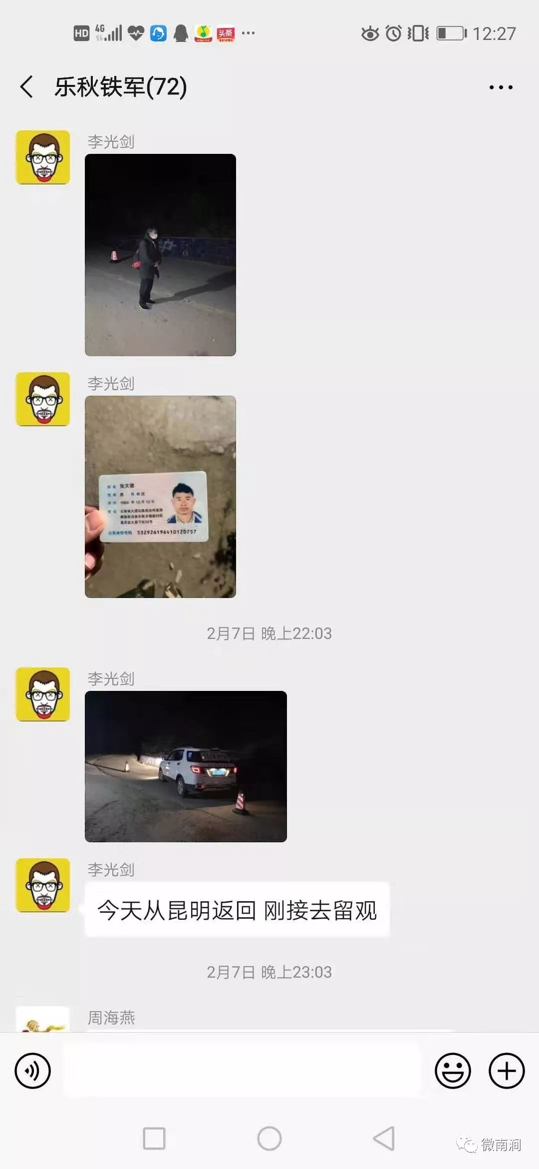 2月7日晚20时40分左右,李光剑提前来到新桥监测执勤点,他主动让白班执勤的同事早休息。就在这时,有一个村民朝着执勤点走来,当得知是刚从昆明返回,准备回村子的原委后,李光剑就耐心地询问了解,按流程进行登记测查,比对相关数据后,李光剑建议他到县城留验站进行留验观察,并作了细心引导。期间,得知村民还没有吃晚饭,李光剑便跑到执勤点帐篷里将自己的那份糕点给了那位村民。在李光剑的耐心说服下,执意想回家的村民顺利配合县红十字爱心志愿接送人员送达县留验站。