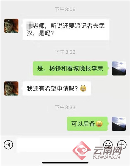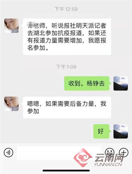 除了他们以外,事实上,云报集团还有许多记者也纷纷自愿报名前往湖北。“听说报社派记者参加抗疫报道,如果还有报道力量需要增加,我愿报名参加。”“同事已经疲惫不堪了,我有单独的房子,可以自我隔离。”……