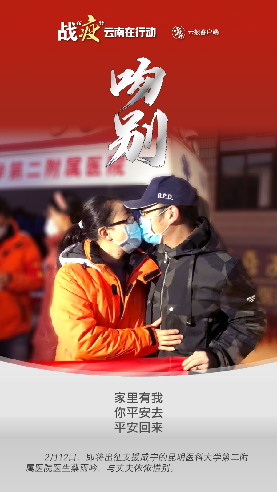 云南网讯 2月12日上午,云南省对口支援湖北省咸宁市医疗队承载着云南4800万各族人民的深情厚谊启程赶赴咸宁。云报集团全媒体云报客户端、春城晚报出品的该组海报选取出征仪式上的一个个瞬间,或吻别,或相拥,或加油,均令人动容。