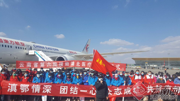 继2月15日、2月16日云南连续两天派出两批医疗队前往湖北后,2月19日下午,云南第六批援助湖北医疗队159人再次驰援湖北,开展新型冠状病毒肺炎重症患者医疗救治工作。