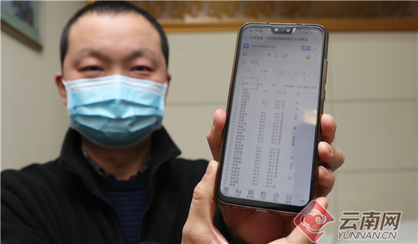 在咸宁前线云南医疗队住地,队员严格按照每日两次的健康报告制度进行体温测量以及线上申报。