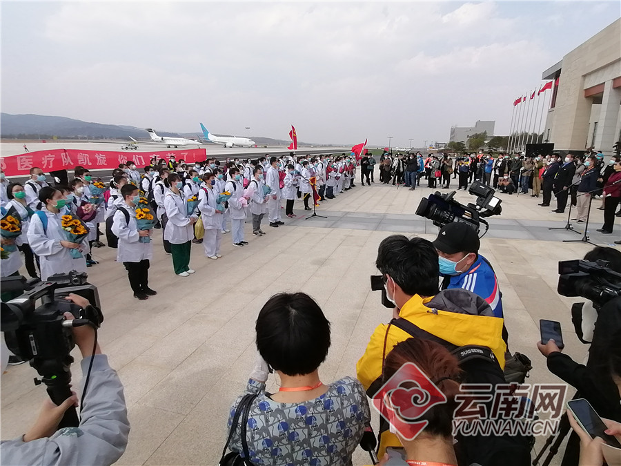 云南援湖北医疗队103名队员抵达昆明。记者 龙彦 摄