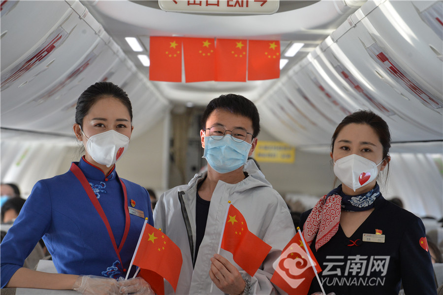 【高清组图】机舱内红旗飘飘 云南援湖北医疗队员回家了
