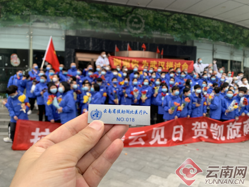 3月22日上午9时,云南省第五批援助湖北医疗队全员将踏上回家路。临行前,大家手捧鲜花合影留念,满满满都是难舍之情。
