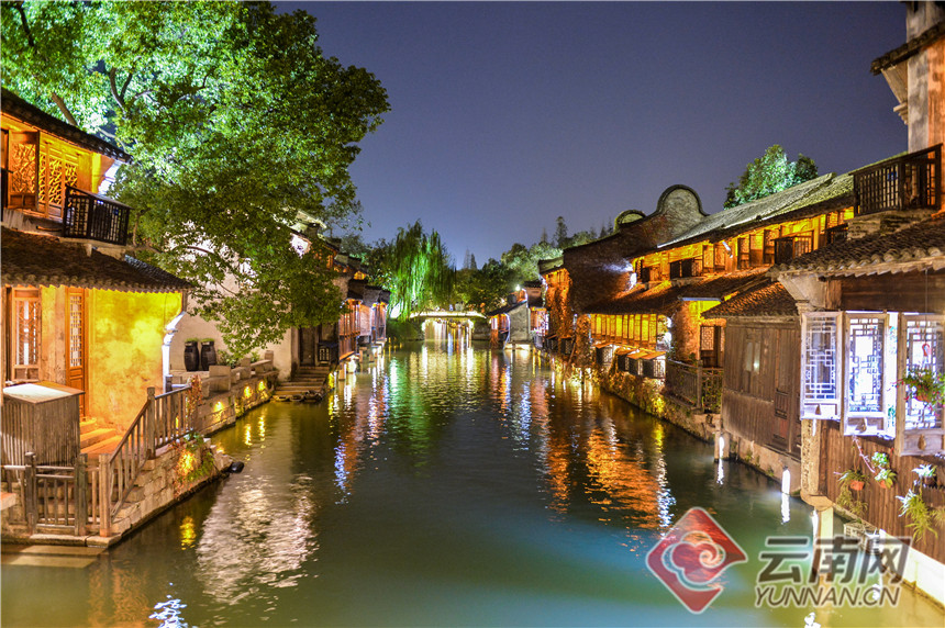 乌镇夜色,7000多年文明史和1300多年建镇史,被称作“中国最后的枕水人家”。记者 张成 摄