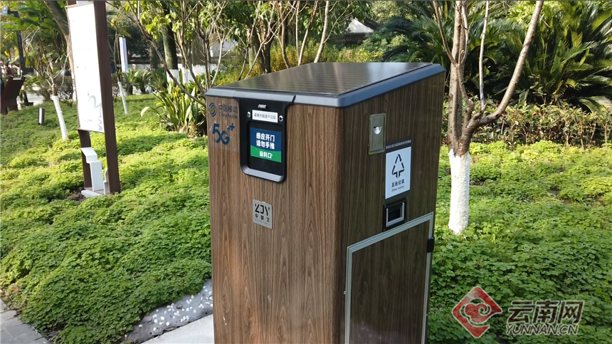 智慧垃圾桶。乌镇人民公园到处可见写有“互联网”“5G”“孵化”等字样的招牌。记者 张成 摄