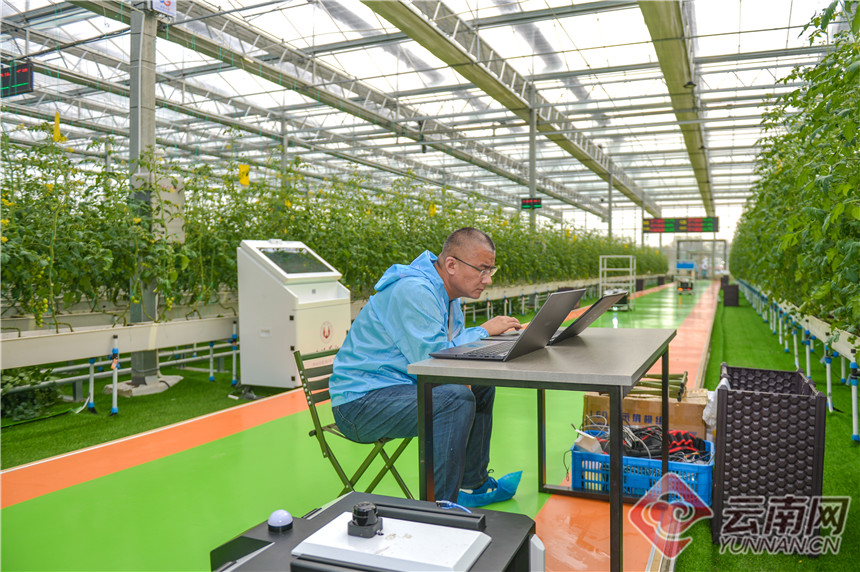 谭家湾云上农业试验场,数字赋能农业。操作人员正在进行机器人测试。记者 张成 摄