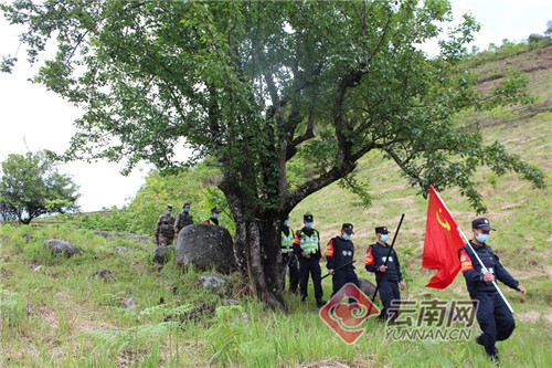 在边境疫情防控一线,哪里有防控点、哪里就有共产党员。片马边境派出所组成党员先锋队,让党旗飘扬在边境线上。