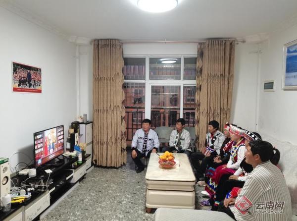 临沧市沧源县岩帅镇新华村村民肖尼秀一家正坐在家中收听收看习近平主席新年贺词。