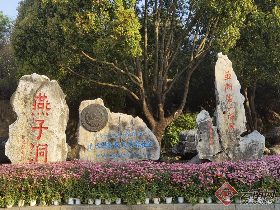 从建水市区驱车半个小时就到了景区,跟随导游殷建梅,观赏着由洞中钟乳石形成的“狐狸”“犀牛”“中国地图”等不同造型的迎宾石前往洞口。“这些年间,我们的重点工作不在景观打造,而是生态保护上,通过植树复绿、停止可能干扰到雨燕的人为活动,为白腰雨燕们提供了一个更舒适的家”。殷建梅说话间,面前的石板道上蹦跶出四五只赤腹松鼠,它们尽情地享受着景区提供的玉米棒等美味早餐,丝毫不畏惧游客的到来。