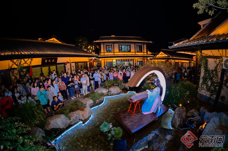 特色小吃街区域,商户们热情地招揽着客人,建水烧豆腐、炭烤小肉串、鲜榨水果汁……各色风味小吃令人垂涎三尺。街边空地上,具有汉唐文化特色的广场舞台演艺、汉服巡演、古琴演奏、琵琶演奏、NPC街区演艺等文化展演活动吸引大批游客驻足观看、拍手称赞。不同于乡村野外夜幕中的静谧,紫陶里的夜晚“活力四射”,为这座千年古城注入源源不断的“夜动力”。