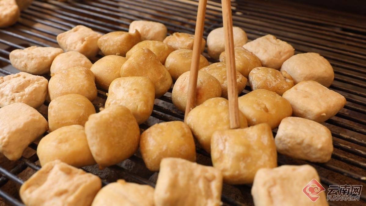 拿起一个被炭火炙烤得滚烫的建水豆腐,掰开,露出细腻绵密的白豆腐心,蘸着特制的香料碟,入口瞬间,香气直冲脑门,双手迫不及待要去拿下一个了。