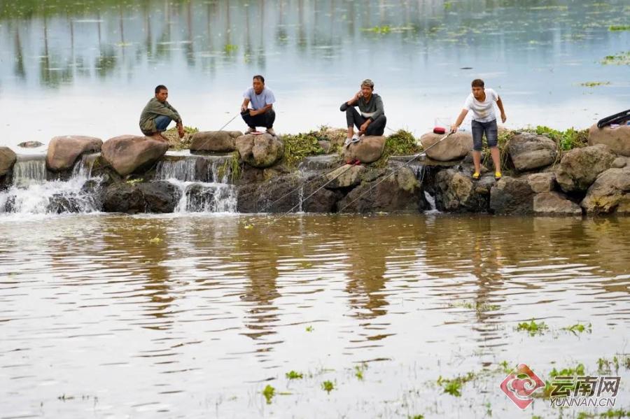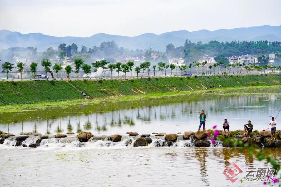 微风吹过,数朵牵牛花轻摆着枝头,顺着河堤向阳生长;静静听,江河从数块大石缝隙穿过,从拦砂坝倾斜而下的哗哗声;慢慢看,白鹭鸶扇动着翅膀落在曲江内裸露的沙洲上,与一旁垂钓的老人共成一幅画卷……