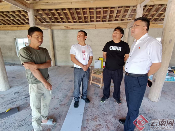养瑞集团党委书记邵全(右一)实地考察集团为“共同富裕共建户”马金亭正在修建的新房。