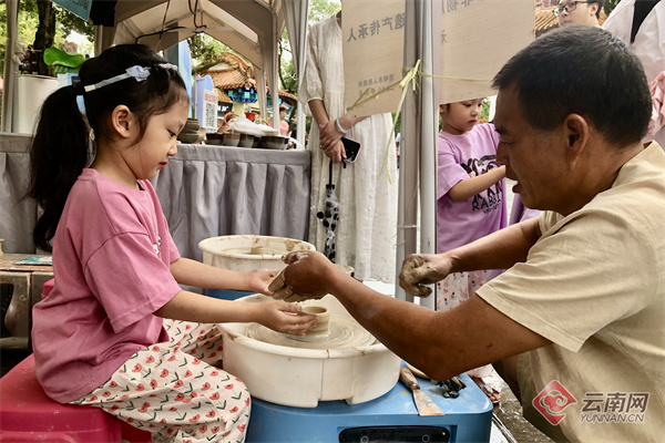 荷风清新,荷花袅娜,此次非遗集市以历史悠久的云南陶瓷为主要展示项目,特邀非遗传承人李宝建、刘明富、王江雁,云南省工艺美术师周昌,现场展示古朴大气的保建陶、至简至美的白陶、色如铜亮如镜的爨陶以及饱满风雅的紫砂,并向市民游客科普了陶瓷“土与火”的烧制工艺,在灵动荷香中融入陶瓷古韵,也将优秀的非遗文化打造成可体验、可互动的“非遗知识宝库”。