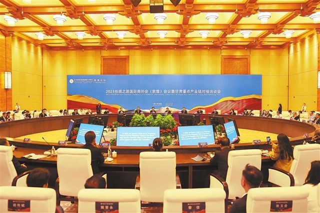 波黑、白俄罗斯、俄罗斯、越南、克罗地亚、印度尼西亚、柬埔寨、新西兰、日本、美国等国家和地区的外交使节、商协会代表,20余家中外企业、全国贸促系统代表,甘肃各地政府机构及企业界人士会聚一堂。9月6日,2023丝绸之路国际商协会(敦煌)会议暨甘肃重点产业链对接洽谈会在敦煌召开,与会各方以“塑造全球文化产业发展新动能”为主题,畅所欲言、各抒己见,展开了深入而富有成效的讨论交流。