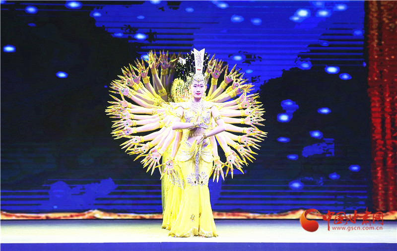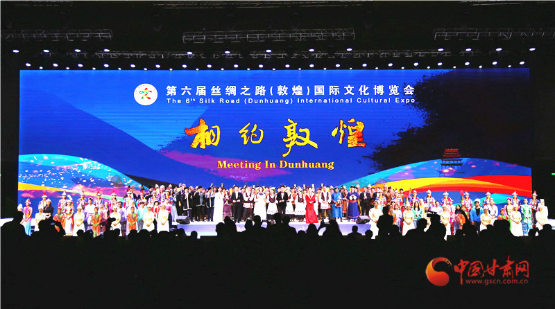 在敦煌,看世界,相约敦煌主题演出用宽广的视角,讲述甘肃故事,传递甘肃声音,为来自世界各地当第六届丝绸之路(敦煌)国际文化博览会嘉宾带来了一个难忘的夜晚,也用时尚元素画了一柄让人们向往的如意甘肃。(宋芳科 程健 程霜 李云乐)