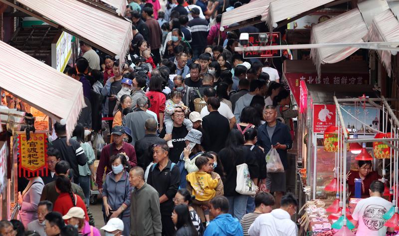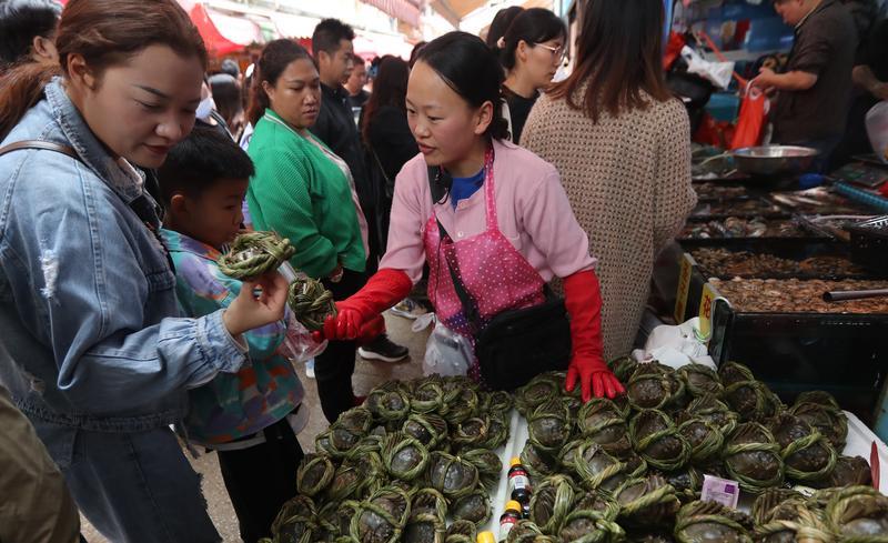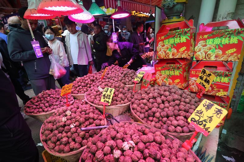 欢度中秋庆国庆,昆明节日市场红火。热闹的大观篆新农贸市场,前来选购商品的市民熙熙攘攘;供应市场的各类商品丰富充足,特色月饼、核桃、板栗、各种应季水果以及新上市的大闸蟹受青睐。