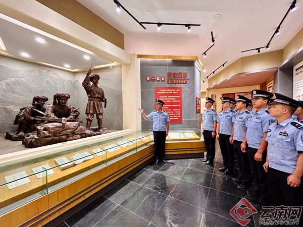 随后,民警辅警来到片马抗英胜利纪念馆,认真细致参观片马人民抗英时的历史展画、展陈实物,聆听了傈僳人片马管事勒墨夺扒的英雄事迹,他带领片马各族人民,用弓弩、长矛、大刀、滚木等原始武器,同仇敌忾、奋勇杀敌,沉重打击了英国侵略者的嚣张气焰,迫使英国侵略者几度撤退,片马人民最终取得抗英斗争的胜利。每幅画像、每件物品背后所蕴含的催泪故事,与一段段浴血奋战、可歌可泣的悲壮历史,无不触动着在场所有人员。