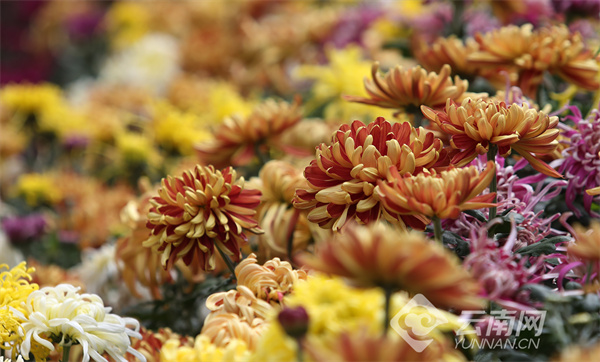 中秋国庆假日,12000盆各色菊花把大观公园装点得花团锦簇、缤纷灿烂;展出的多头菊、独本菊、悬崖菊、案头菊和造型菊姿态各异,还有分布各园区的主题花坛,极具园林金秋韵味,营造出欢乐祥和的节日氛围,让前来赏花观景的市民游客大饱眼福。