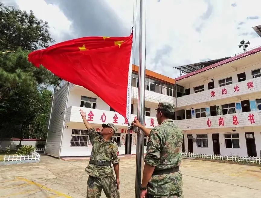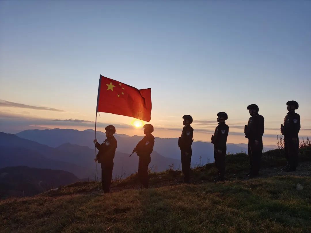 腾冲边检站民警巡逻途中与国旗合影 扬帆 摄