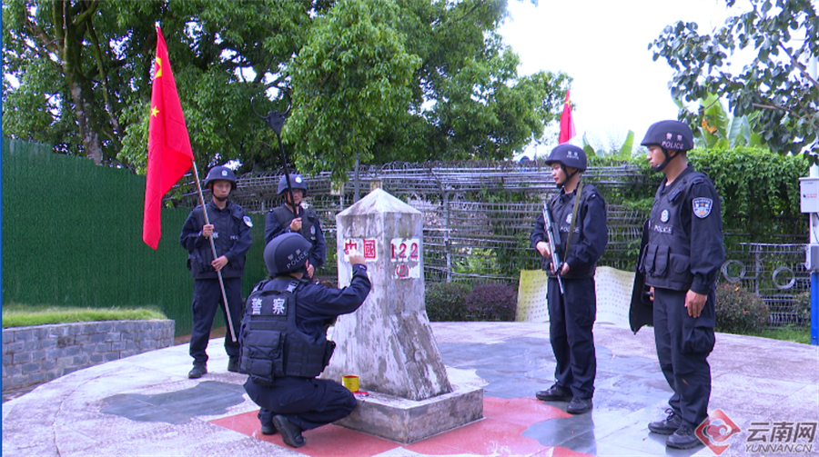 除了升国旗为新中国庆生,清水河出入境边防检查站南伞分站的巡逻管控组在巡逻期间主动为边境线上的国界桩描红,以此表达对祖国的热爱之情。“我在西南边陲,祝祖国繁荣富强、国泰民安。”在界碑前,民警孙永福和队友们给祖国送上祝福。