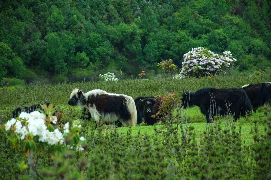 目前,花甸坝成了游人的接待站,有食宿供应。草甸坡地上是悠闲行走的牦牛群和高山羊,高原溪流于其间蜿蜒,让人感到原始的平实与宁静,延伸眺望去就是雄峻的苍山,只需一瞥,便有万丈豪情奔涌心头,治愈了跋涉的疲惫。在这醉人的花甸坝,是时候尽情敞开心胸,释放欢笑,完全融入在美景中。