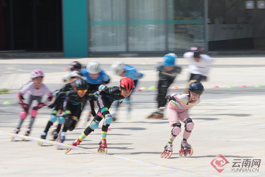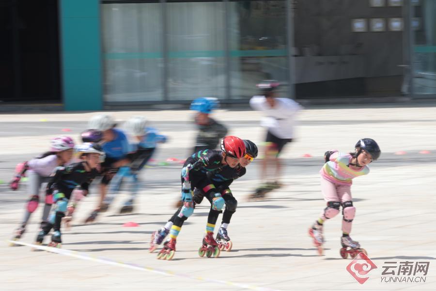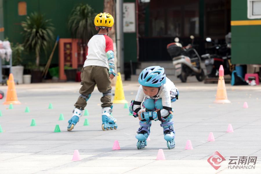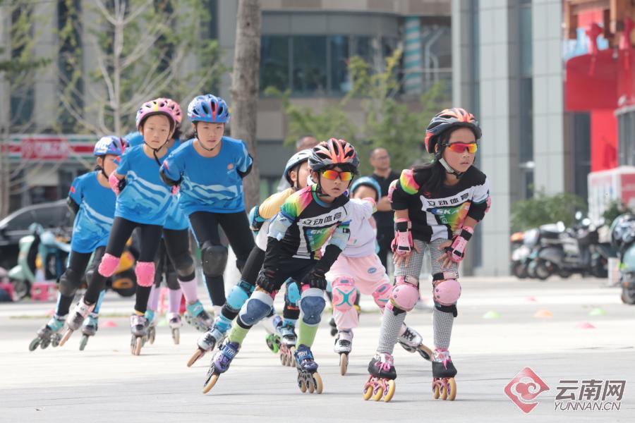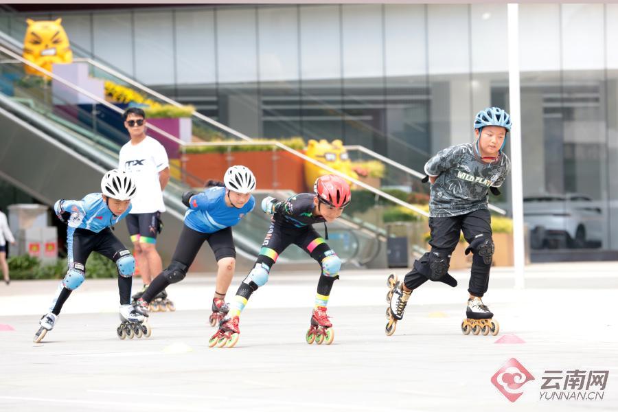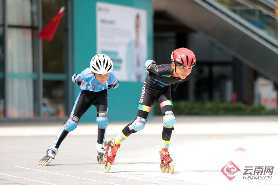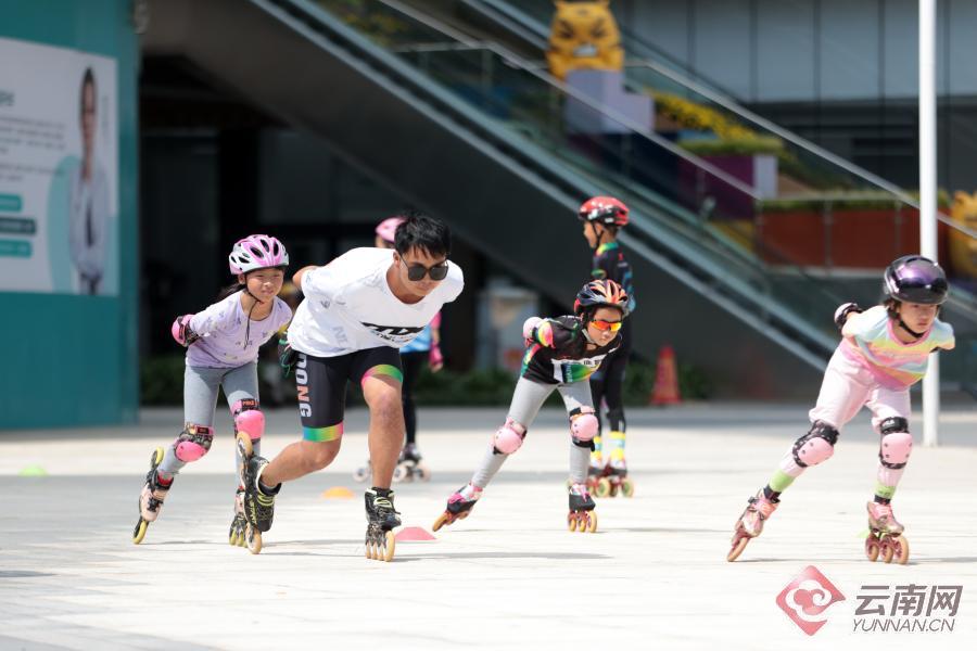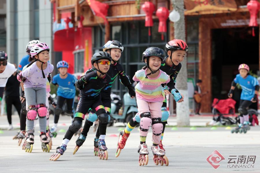 10月5日,昆明市西山区润城二大道附近的广场上,一群孩子聚在一起参加轮滑运动,健身强体,乐享小长假生活。中秋国庆假期,不少市民结伴邀约以健身锻炼的方式欢度假期。