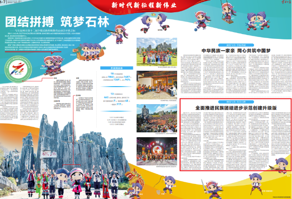 牢记习近平总书记殷殷嘱托,石林彝族自治县深入贯彻中央和省、市关于民族工作的各项工作要求,自2017年成功创建为“第五批全国民族团结进步示范县”以来,已持续创建19个省级、112个市级、188个县级民族团结进步示范单位。